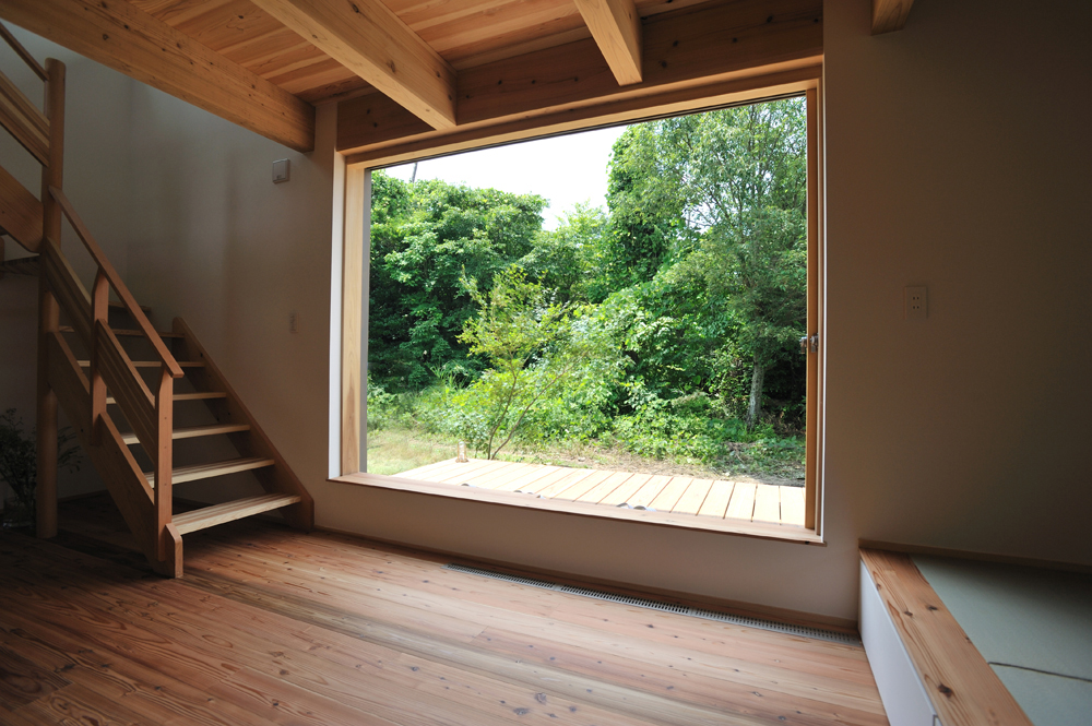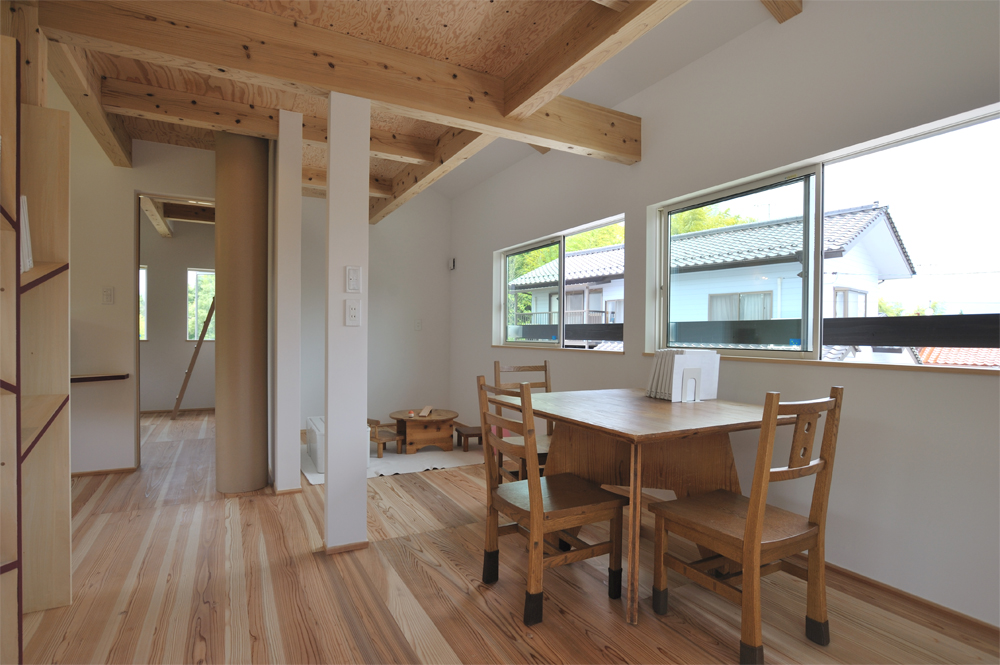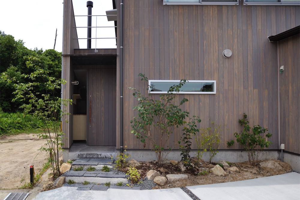 東広島の西高屋駅から、歩いて15分ほどの住宅地に建つ「高屋町中島の家」。この敷地の隣には雑木林があり、リビングから木々を眺めることができます。夏の暑さも雑木林を通ってくる風によって涼しさの演出もしてくれるのではないでしょうか・・・。また、太陽熱利用のOMソーラーや、薪ストーブを使って冬の寒さをしのぐ。自然の営みに寄り添って、自然に配慮した住まいづくりを見ていただければと思います。