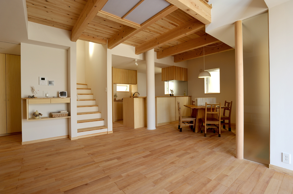 天気の良い日にお布団を干すと、お陽さまのいい香りとポカポカとした温かさをもらいます。OMクワトロソーラーの付いているこの家も同じです。お陽さまをたくさん浴びたその日には、家中にたくさんのエネルギーが蓄えられます。井口の坂道が多い地形のおかげで、南向きの屋根面から自然の恵みを存分に受けることができます。