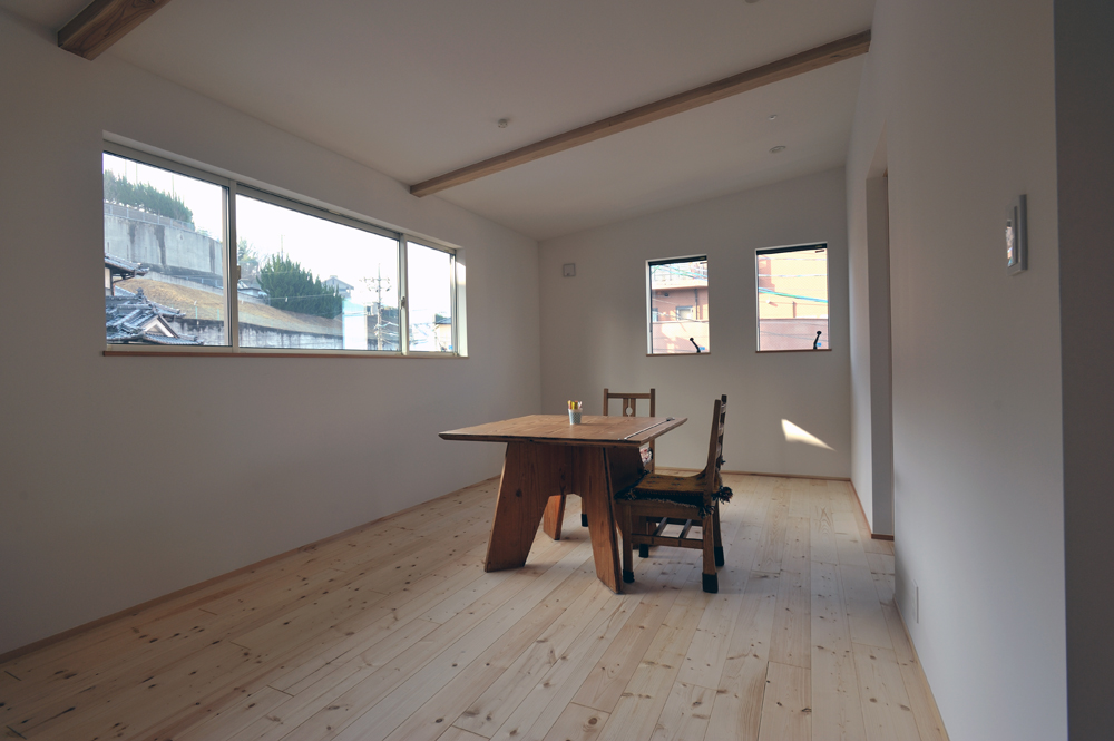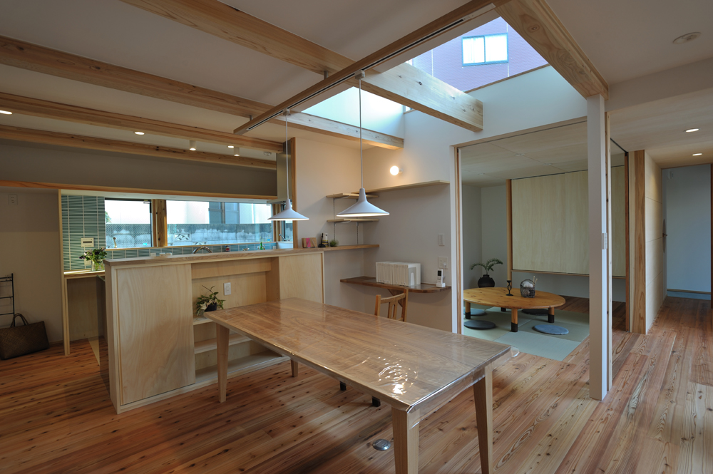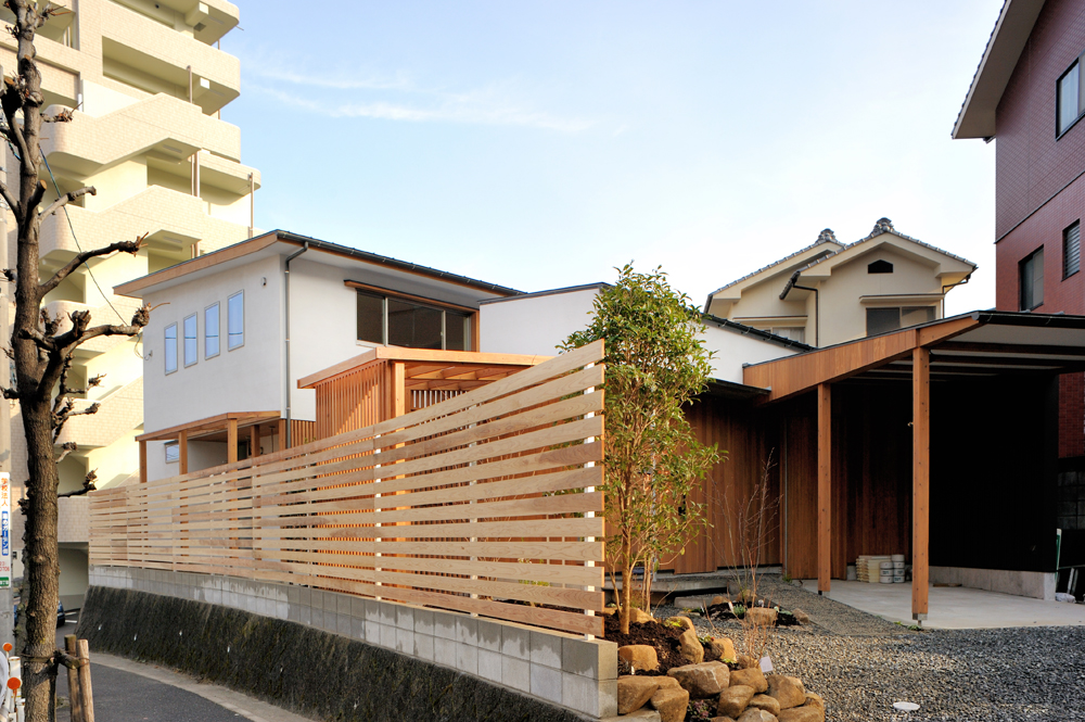 矢野西の家 広島市安芸区 矢野西 在来軸組み工法 設計・ 施工/(株)沖田 コートハウス 駅前の人通りの多い道沿いに建つ今回の「矢野西の家」。人目を気にせず開放的に暮らせるようにと選んだのがこのコートハウスの手法。採光や通風を確保しつつ、プライバシーを守る。中庭を介して家族の気配を感じることのできる住まいができました。また、駐車場から直接入れるご主人様の趣味室や、2Fの広いバルコニーなど、この家ならではの特徴もぜひ見ていただければと思います。 阿賀の家小谷の家 施工事例