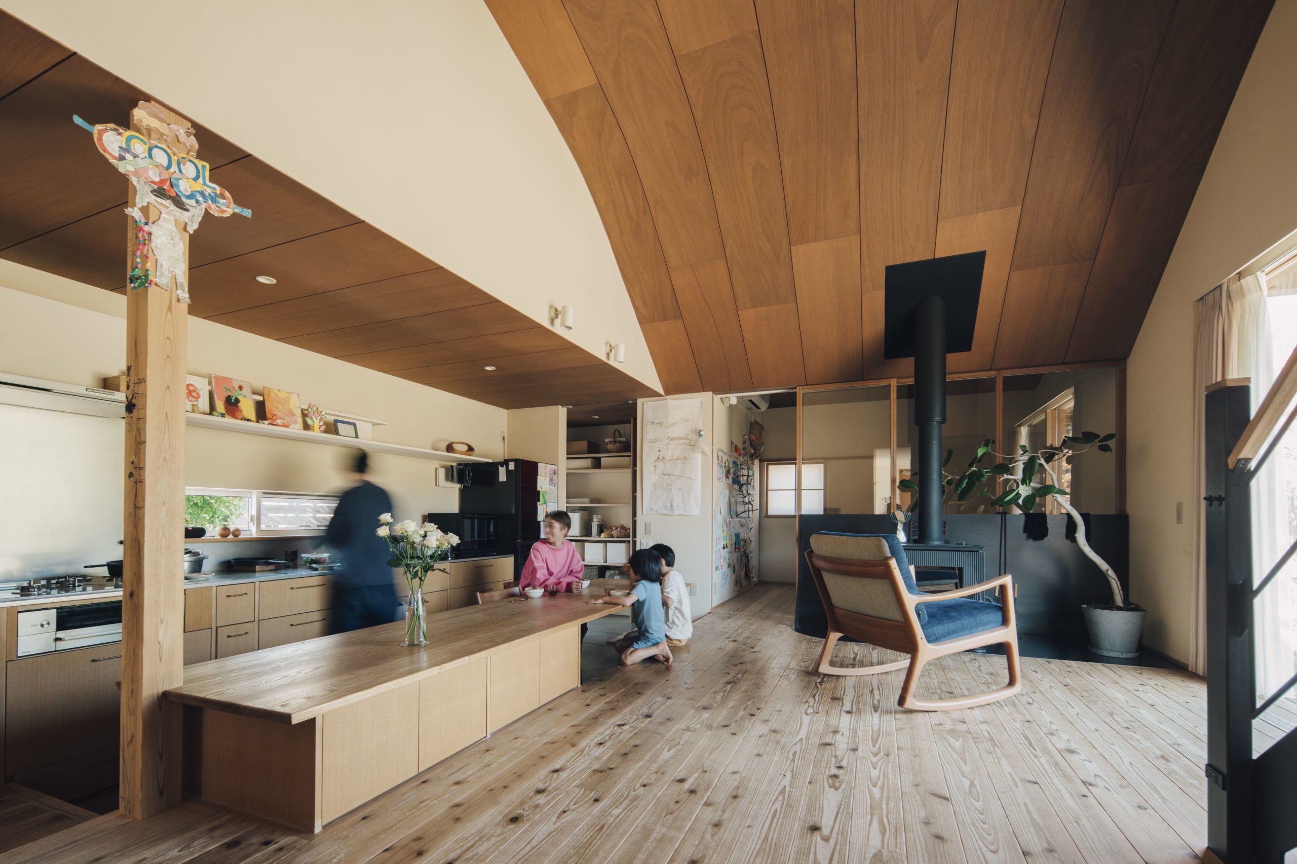 どこにいても家族の気配を感じられるコンパクトな平屋ベースの家です。