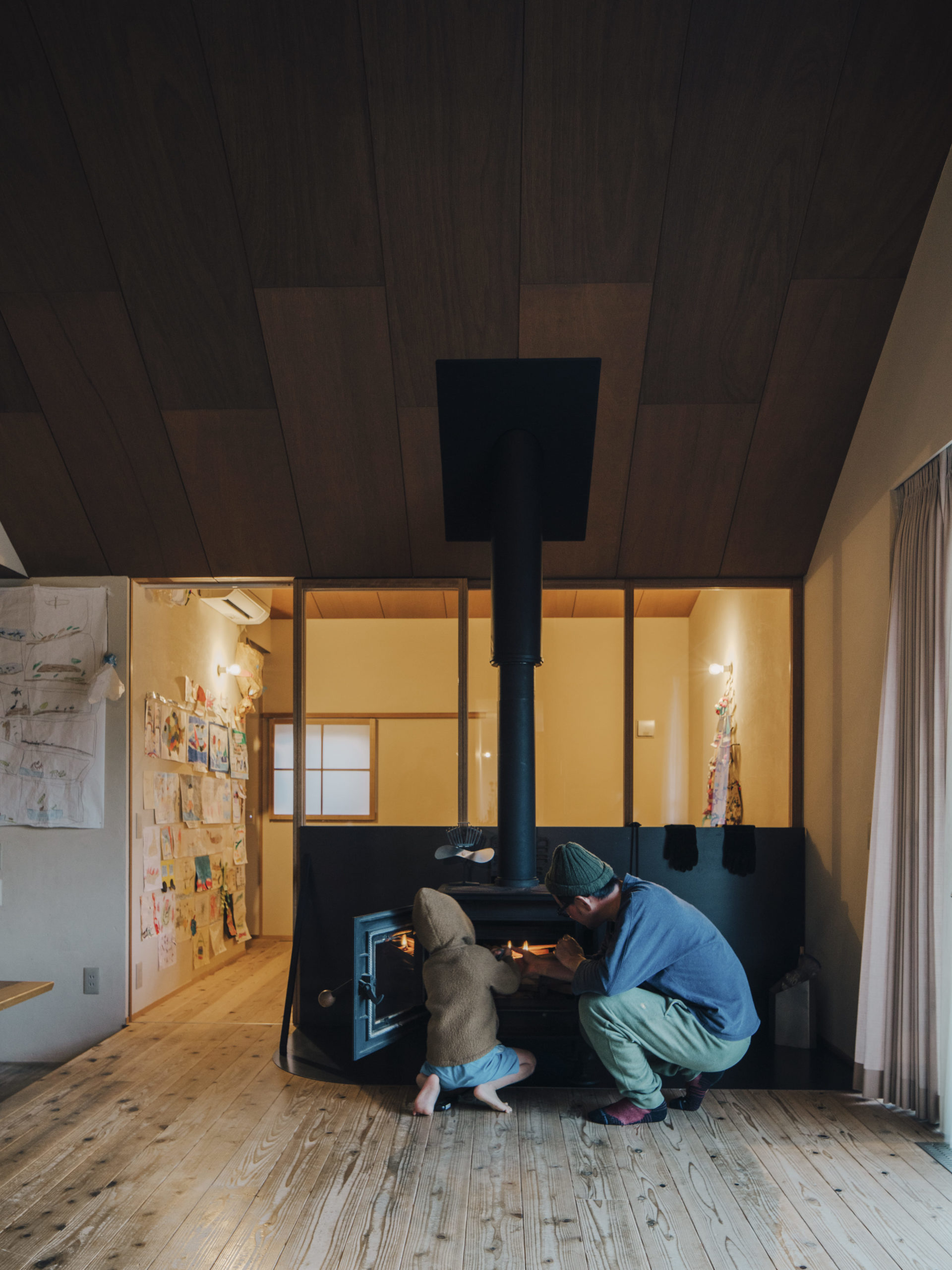 冬は薪ストーブ一台で家全体をあたためる。